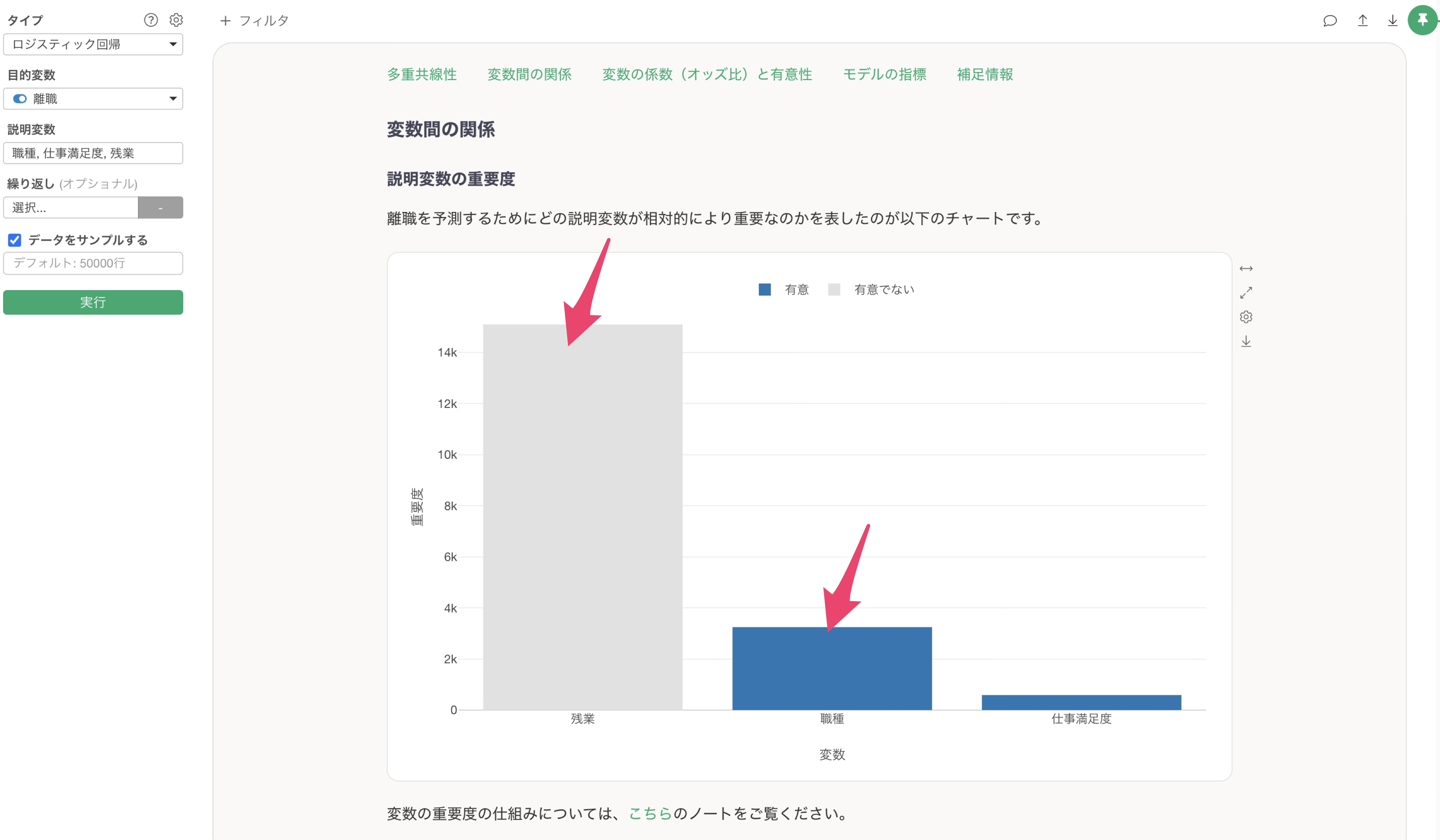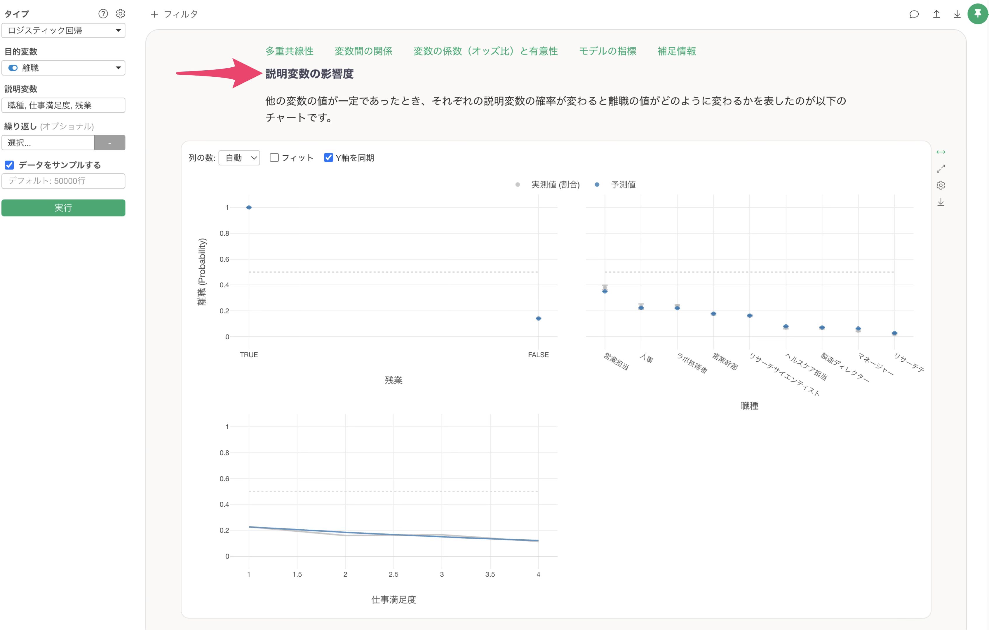 今回説明したようなケースが発生しているかどうかは、説明変数の影響度のセクションのチャートから確認が可能です。