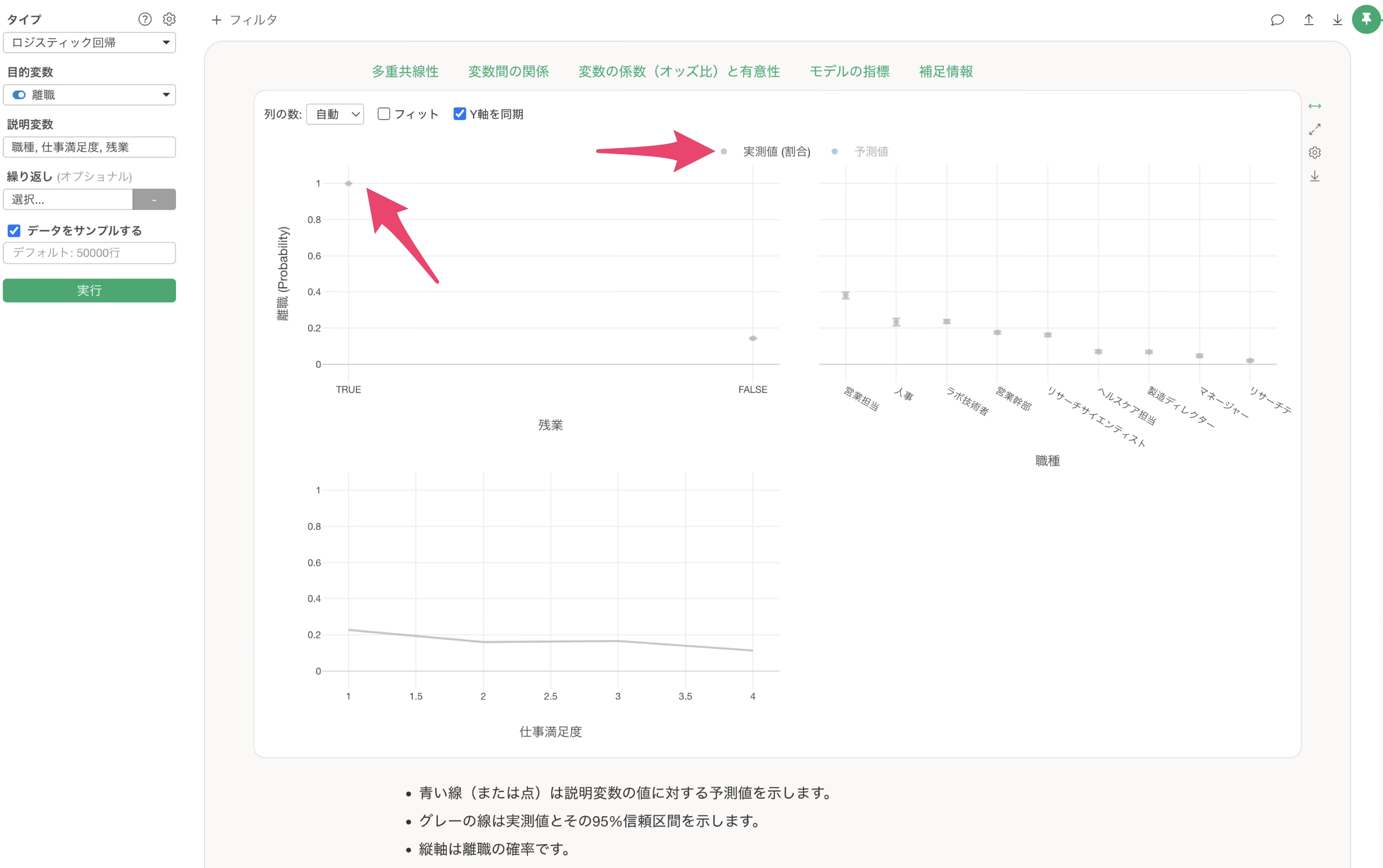 なお今回は、あらかじめロジスティック回帰のモデルを作成し、前述したような現象が起きているモデルを用意しています。