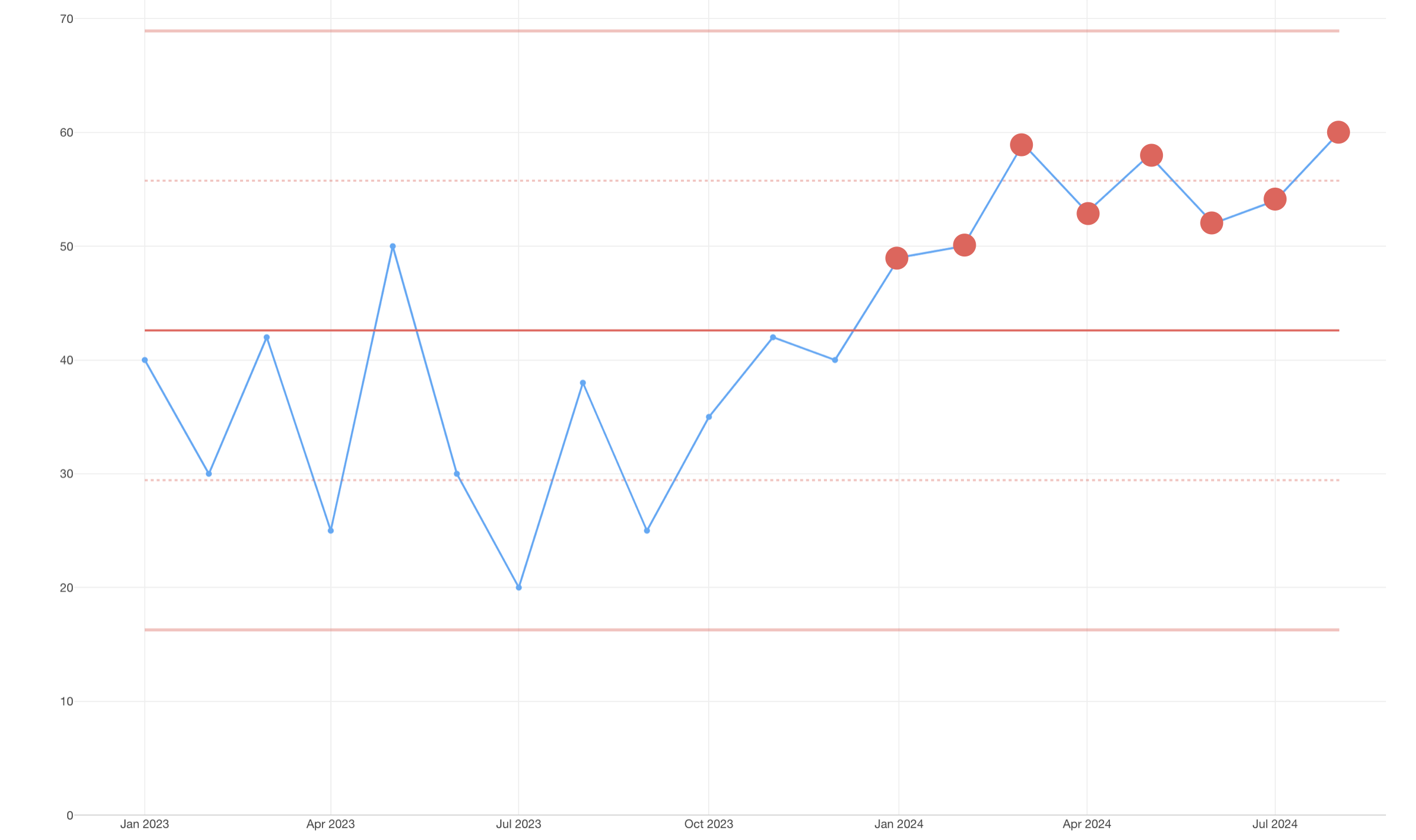 この質問に答えを出すのに役に立つのがXmRチャートです。