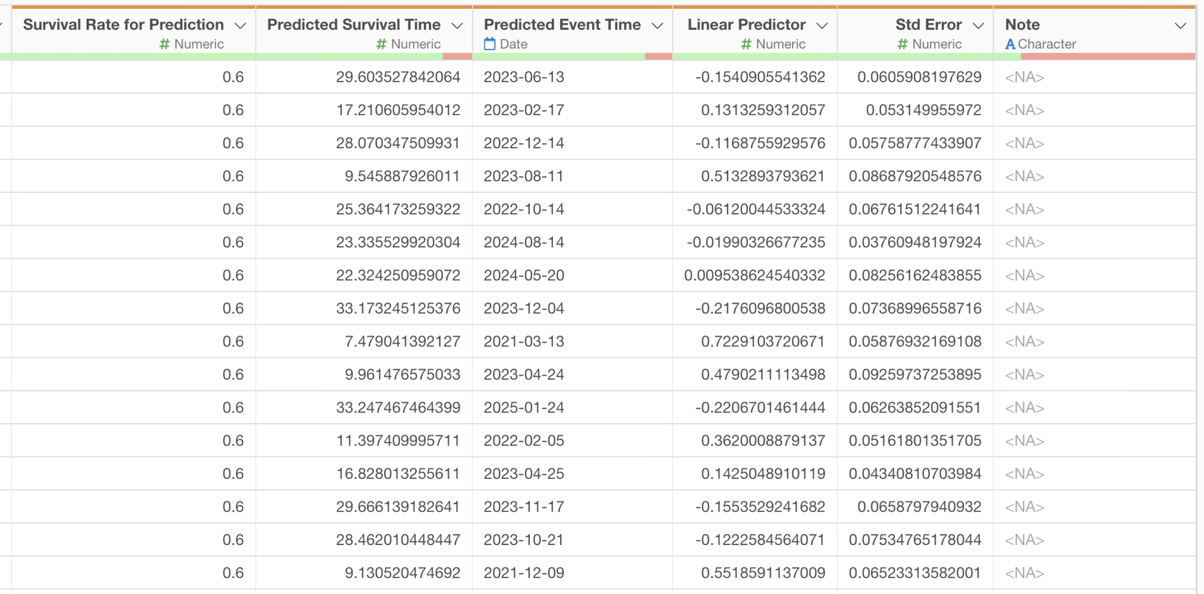 It’s important to note that the Predicted Survival Rate represents a conditional survival rate from the baseline date, not an absolute survival rate.
