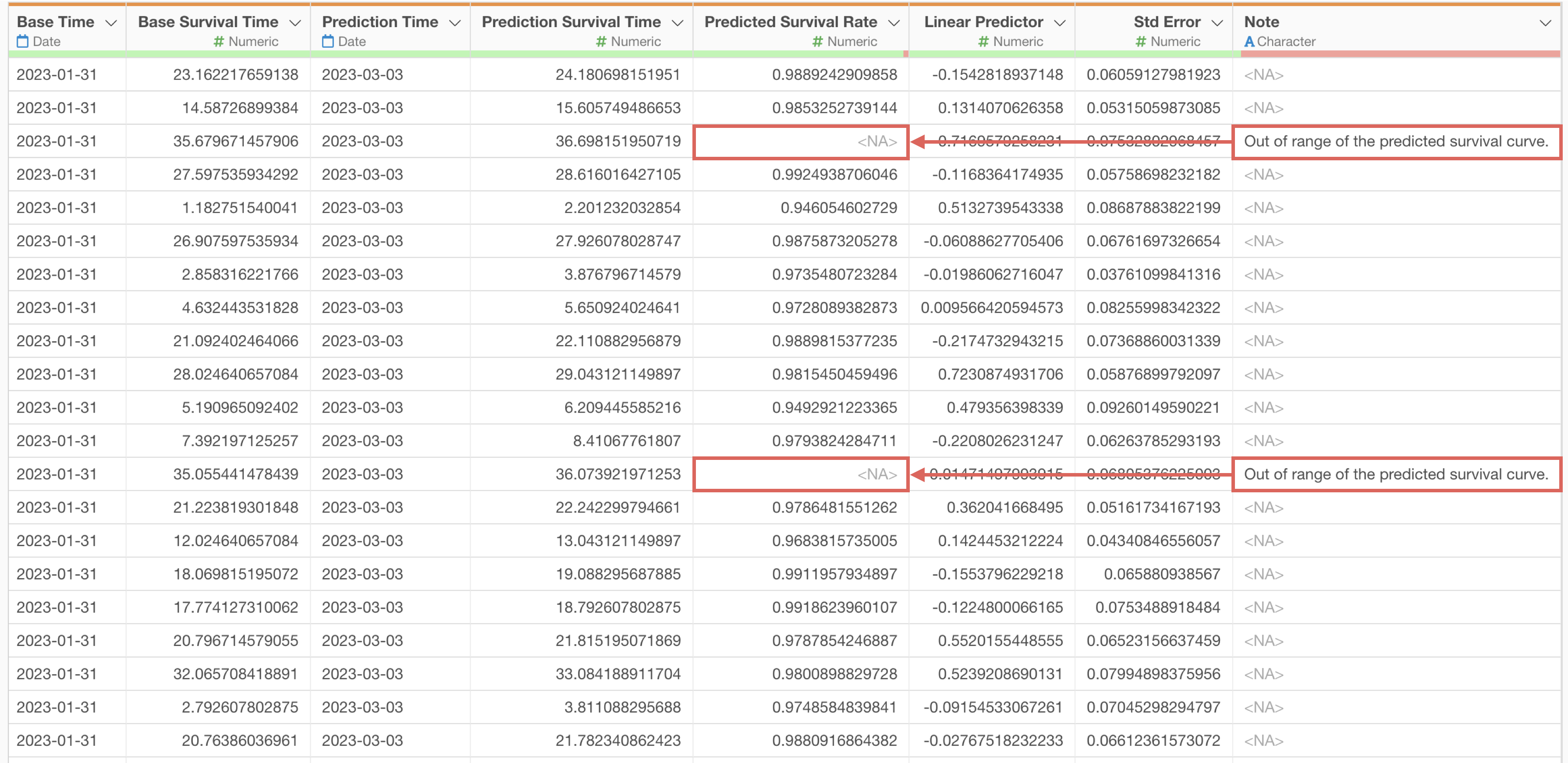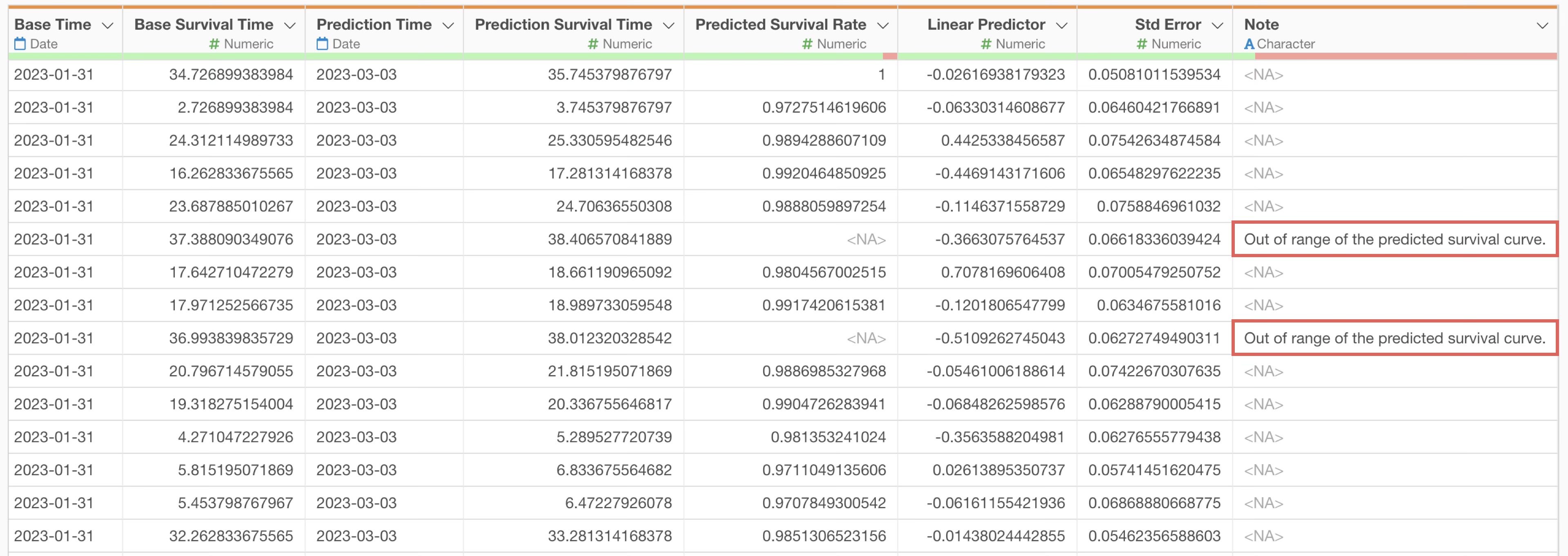 “Out of range…” is a message that may appear when predicting the N-month survival rate.