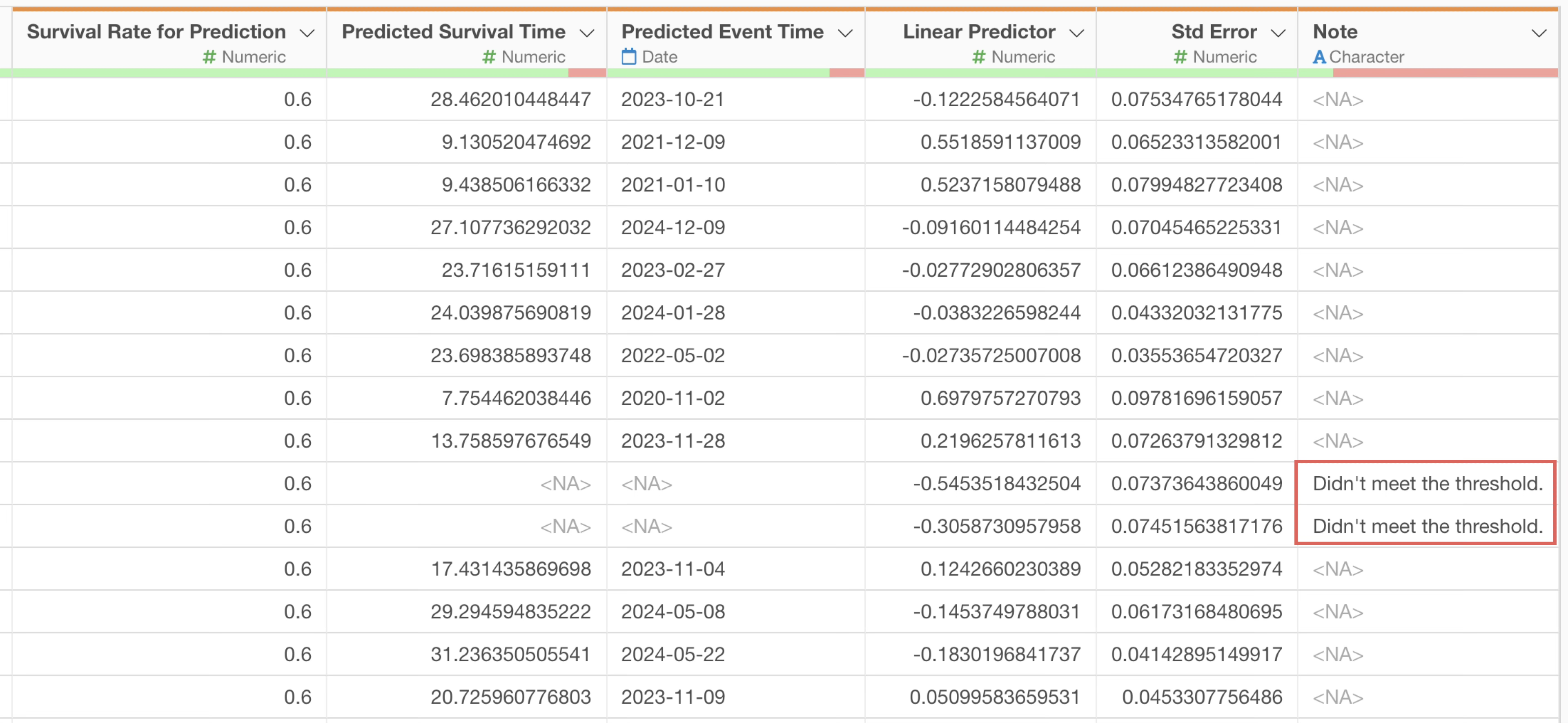 “Don’t meet the threshold” is a message that may appear when predicting the date for a specific survival rate.
