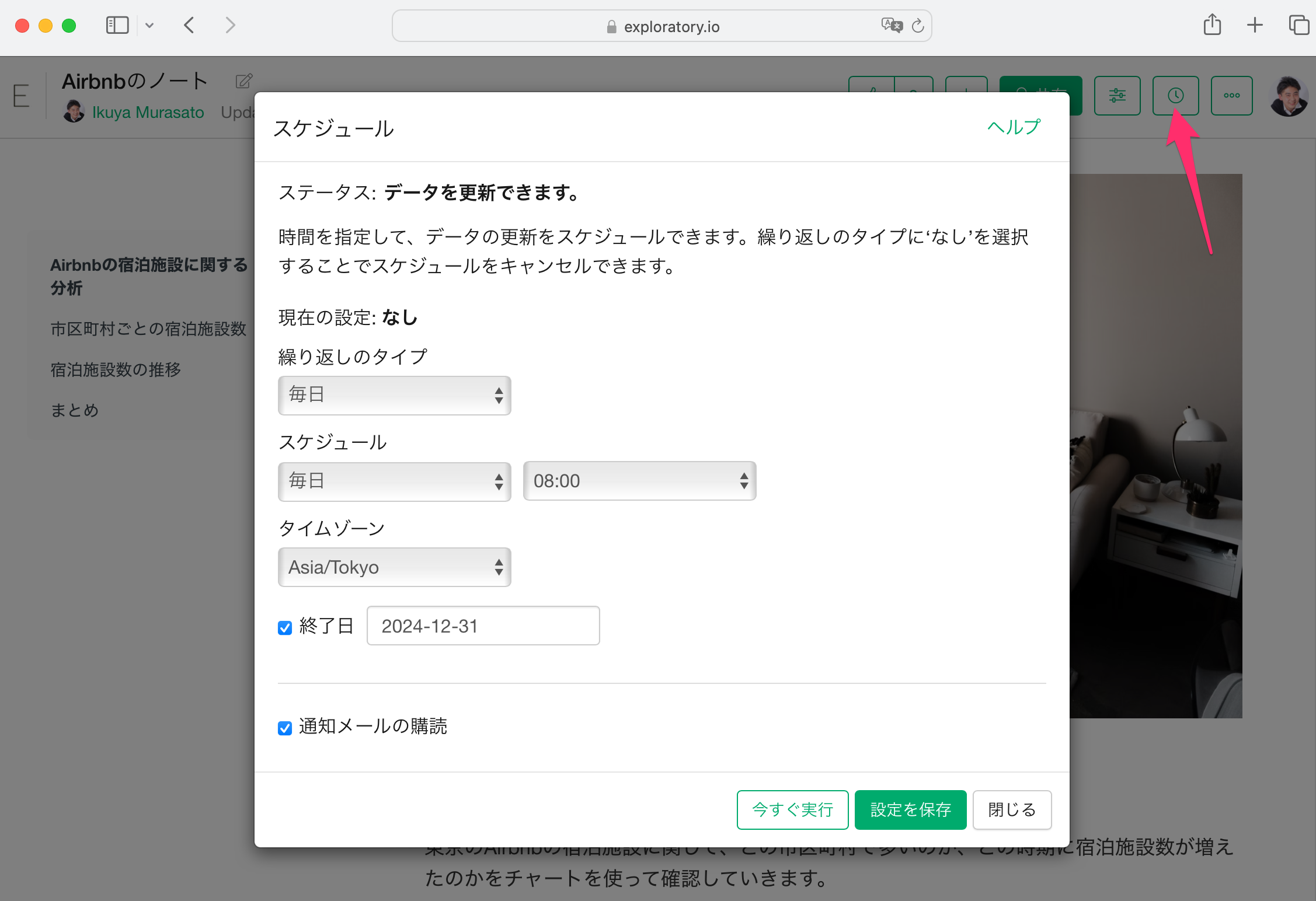すると、データが再インポートされ、ノートに含まれるチャートやアナリティクスを更新することが可能です。