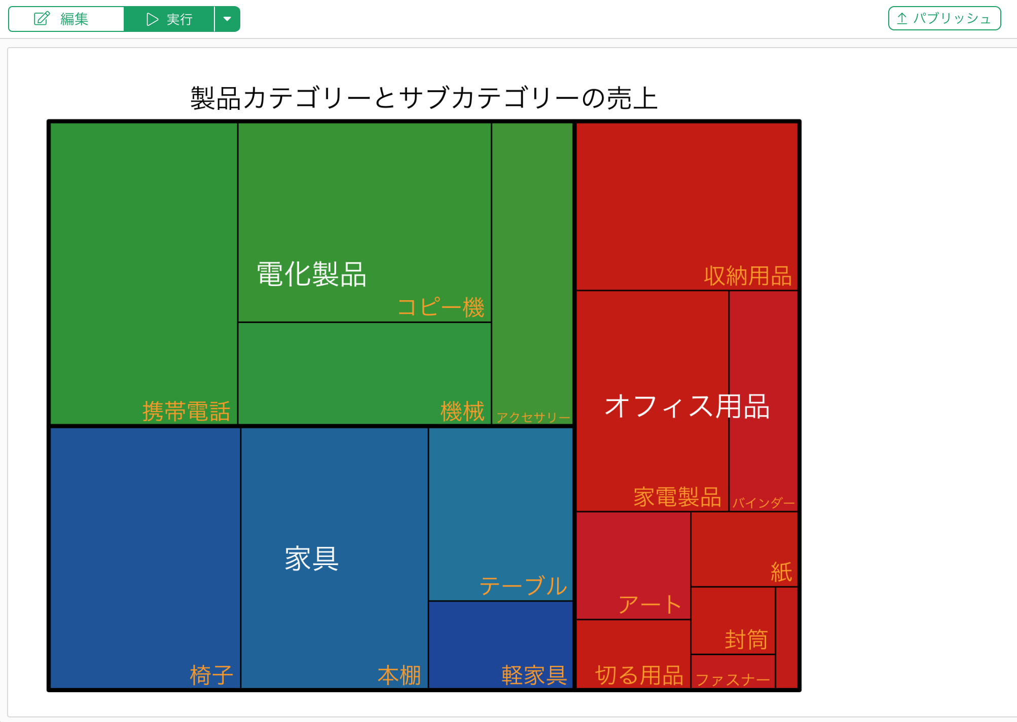 ツリーマップを作成するには、カテゴリー、サブカテゴリーのように階層構造になっている集計データが必要です。