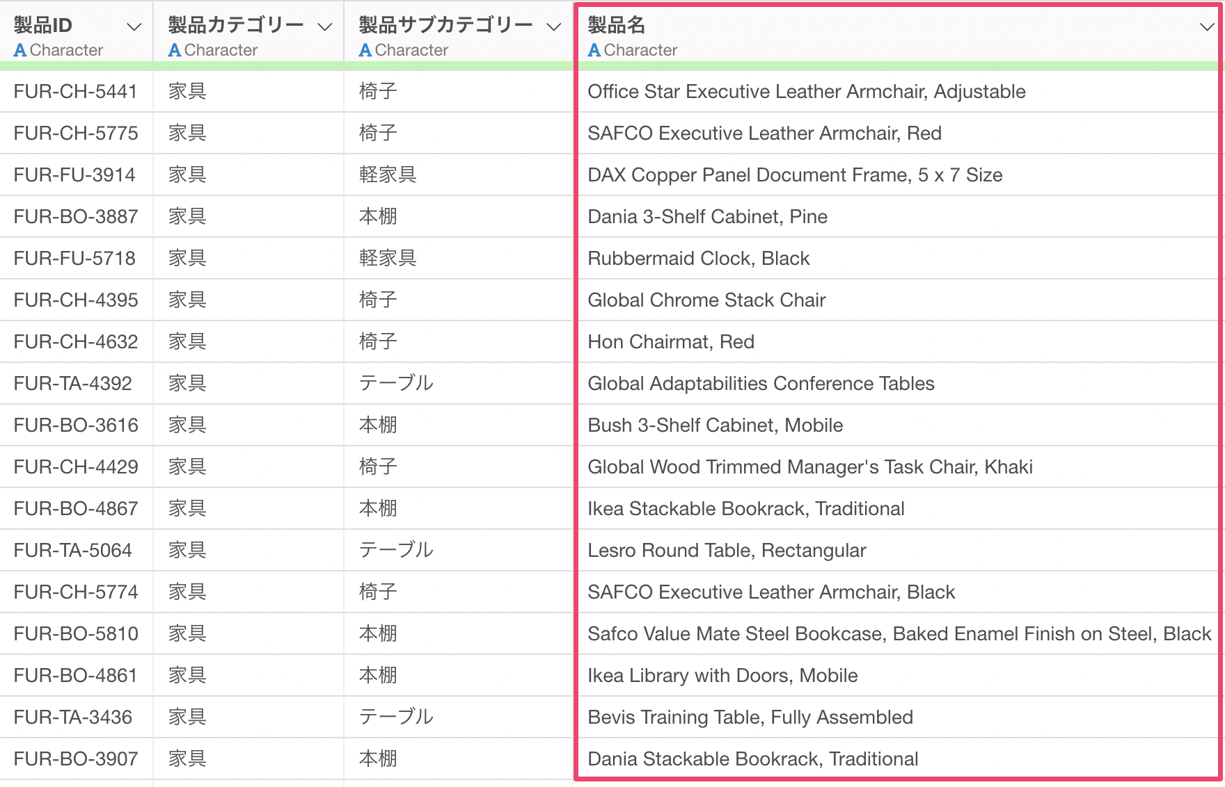 しかし、製品IDの値を見たとしても、どの製品なのかがわかりません。