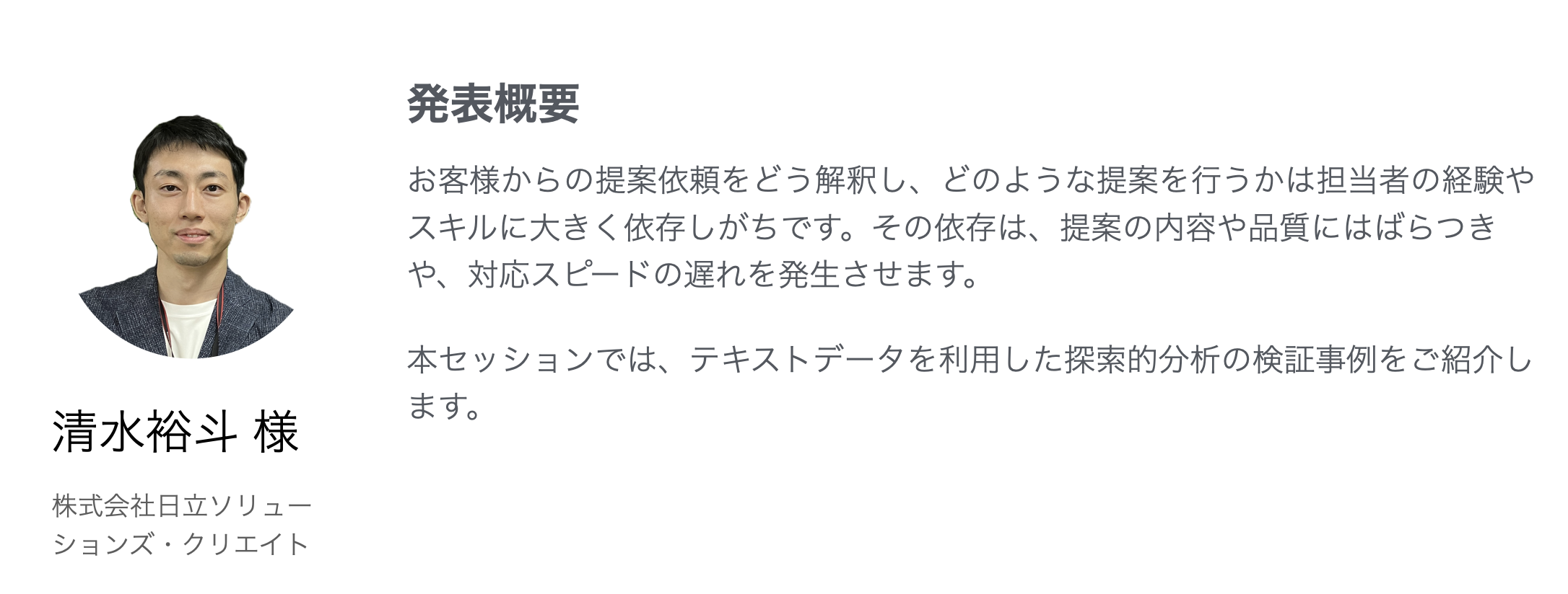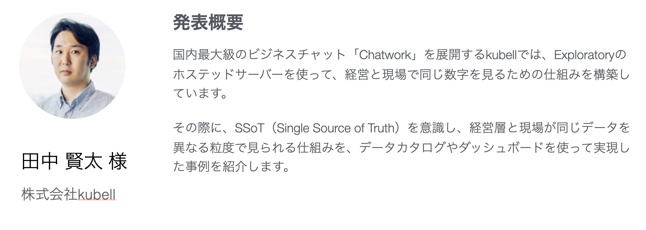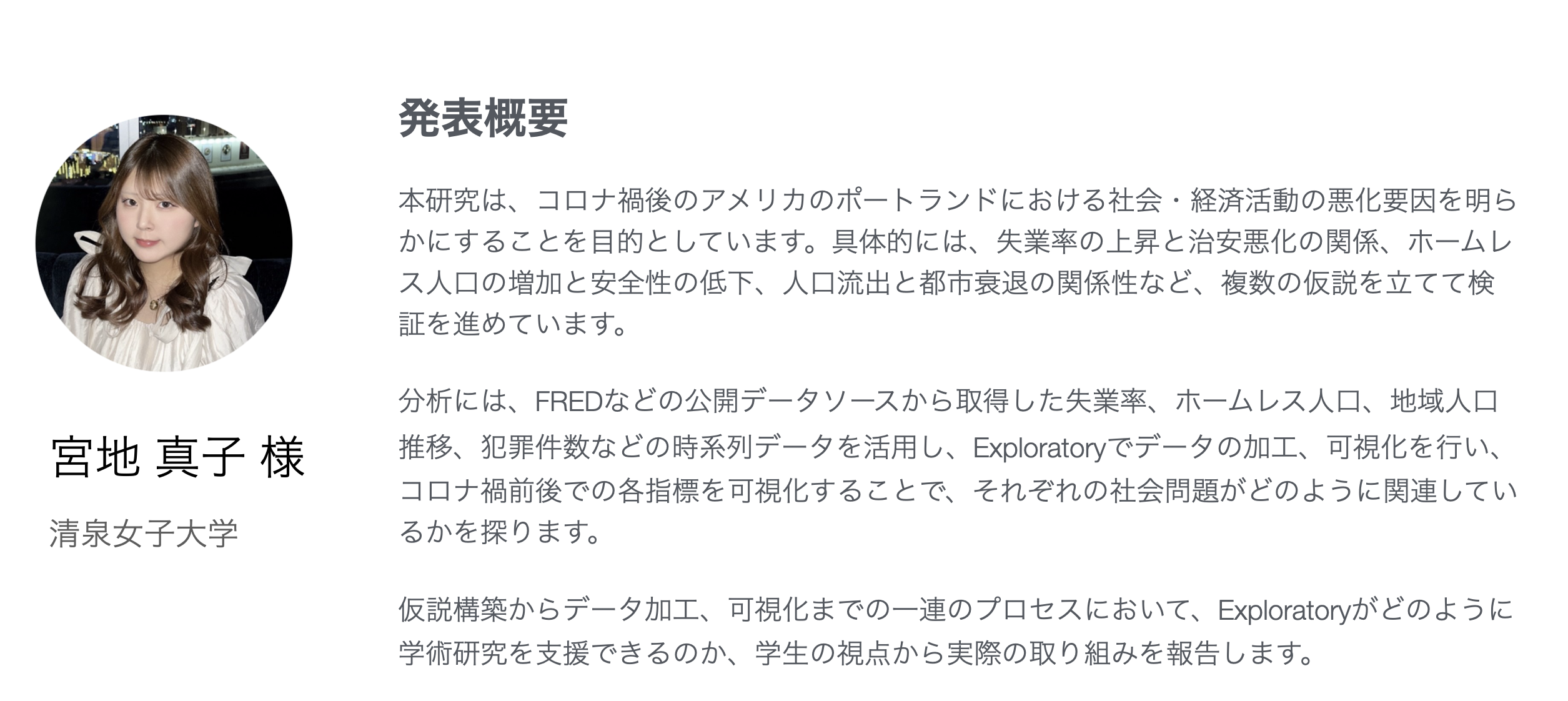 Exploratoryユーザー会では、Exploratoryのユーザー様より活用事例や分析手法などの発表をしていただきます。