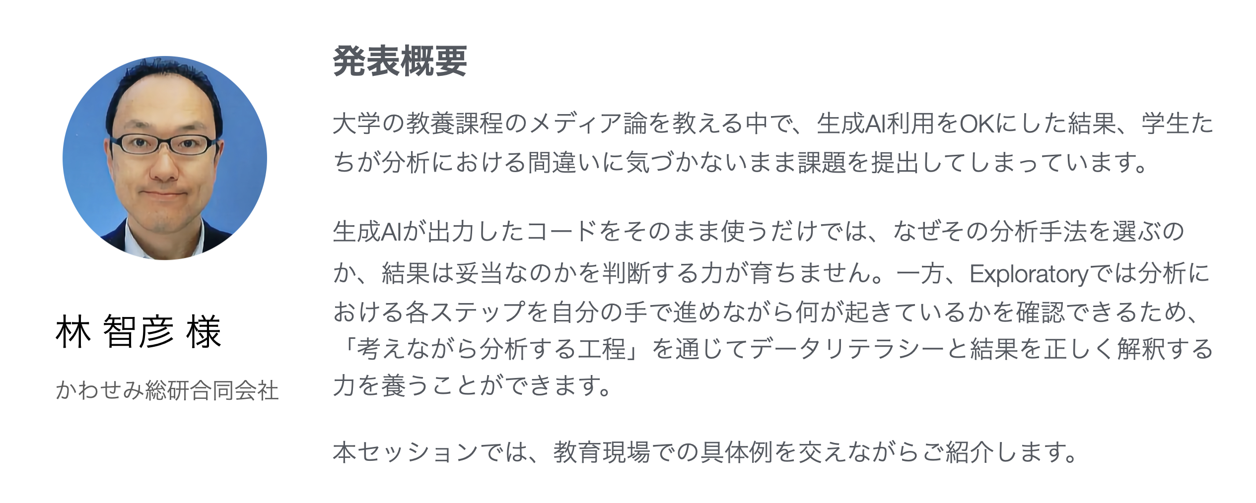 生成AIに頼るだけでは育たない分析力を、Exploratoryを通じてどう教育で補完したかの事例を紹介します。