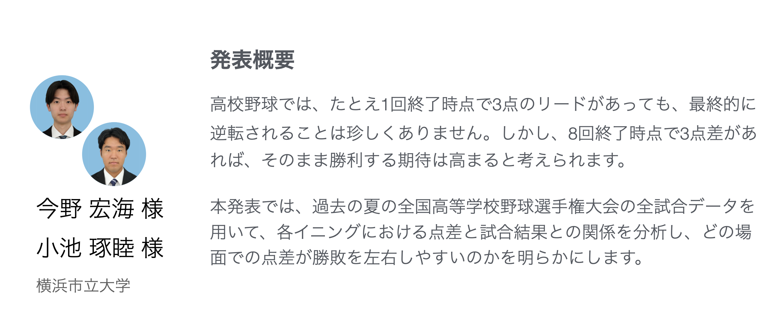 全国高校野球選手権大会の全試合データを用い、各イニングでの点差と試合結果の関係を分析し、勝敗を左右しやすい局面を明らかにした事例を紹介します。