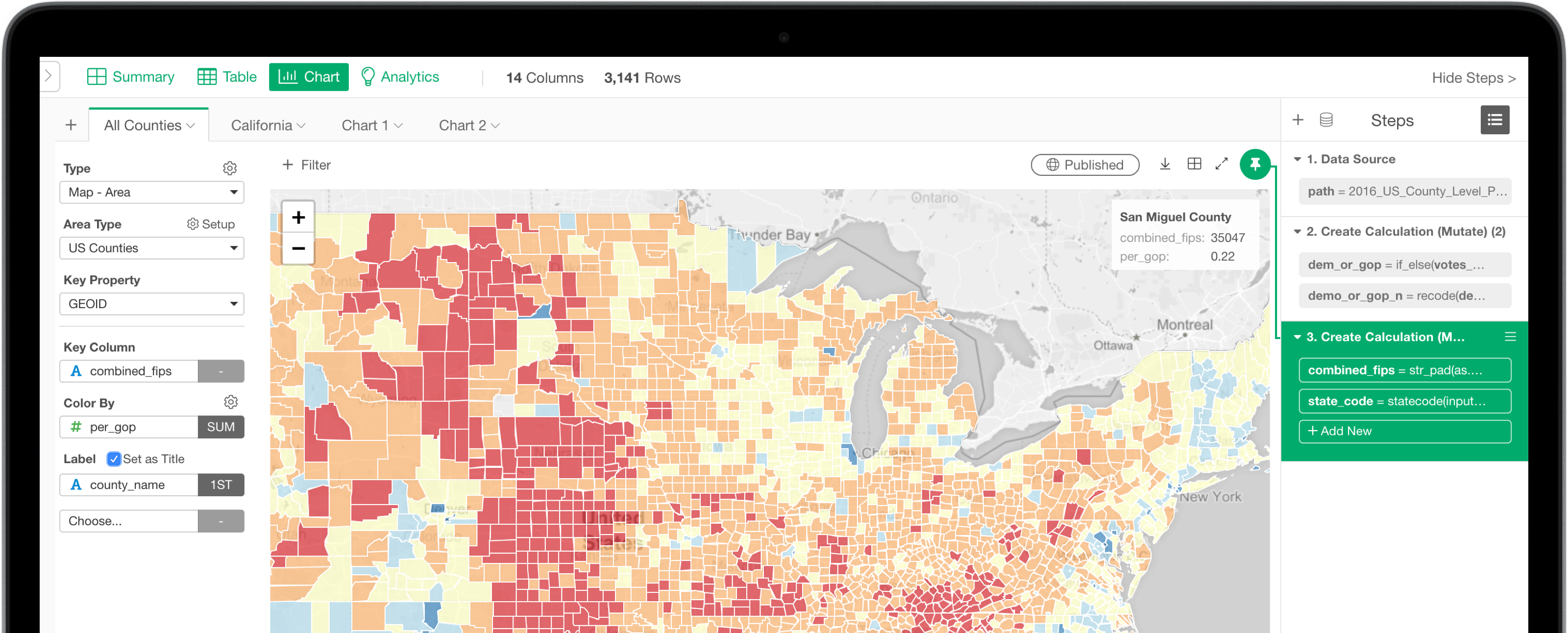 To explore data deeply and flexibly, you need Data Wrangling, Data Visualization, Analytics, and Communication. Exploratory provides not only the best capability in each area but also a natively integrated simple UI experience that is designed from the ground up.