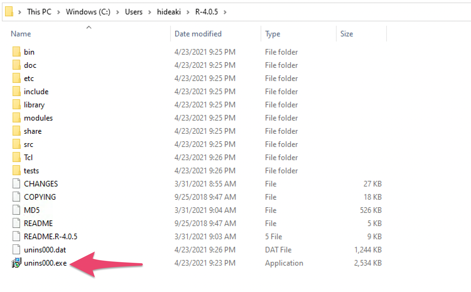 Go to the directory where the R used by Exploratory Desktop is currently installed, and run the uninstaller (unins000.exe) to uninstall it.
