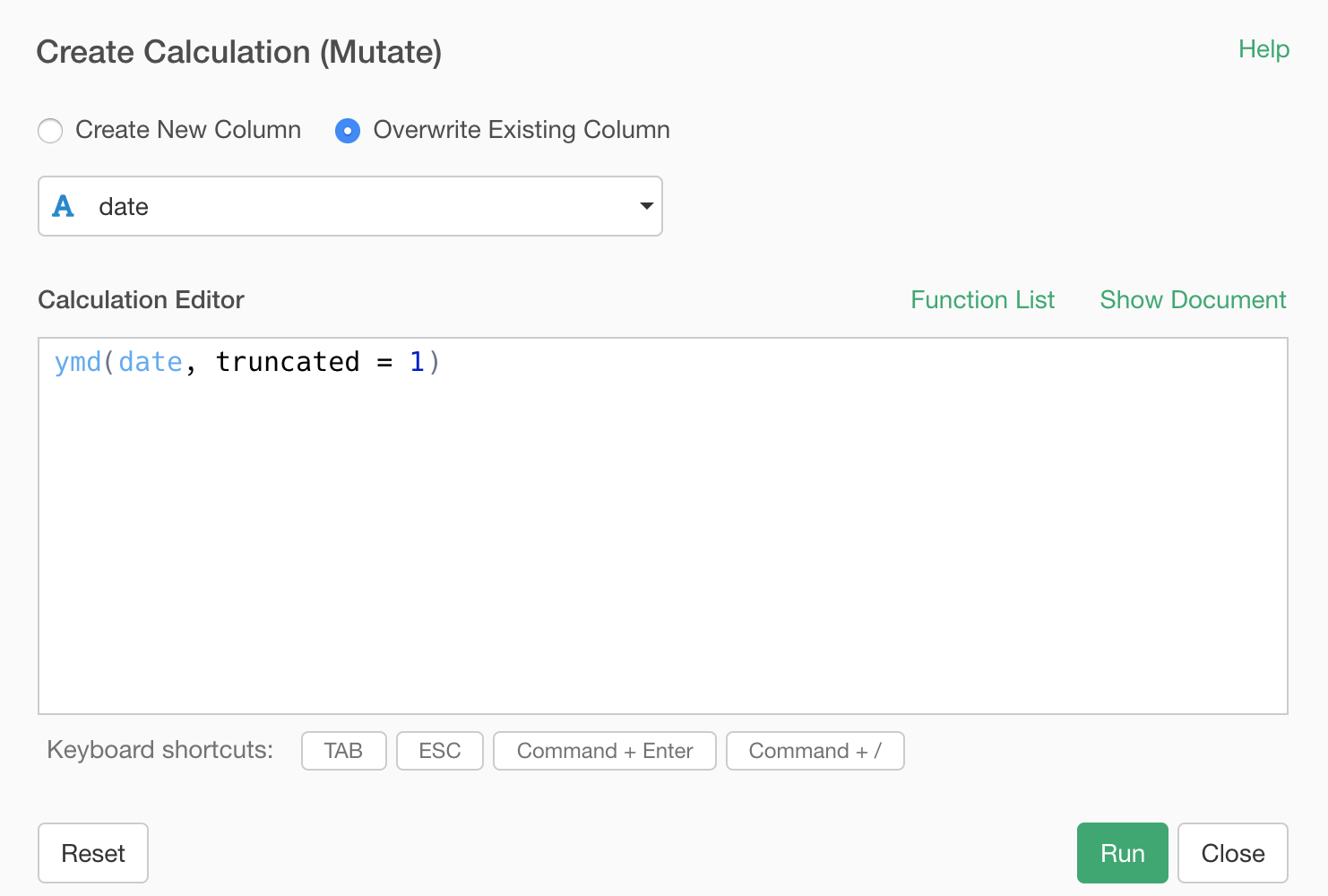 This will populate ymd function with date column.