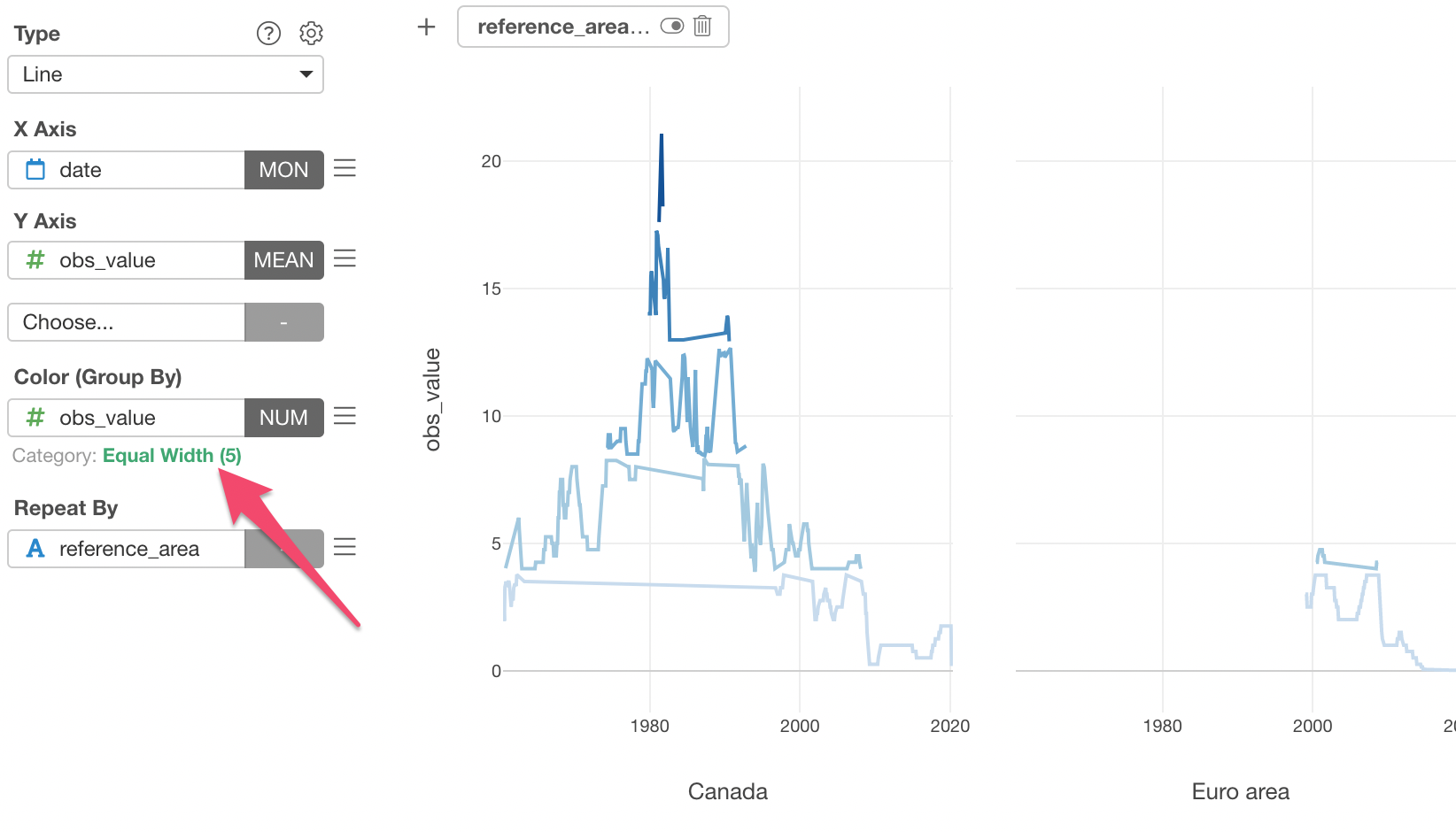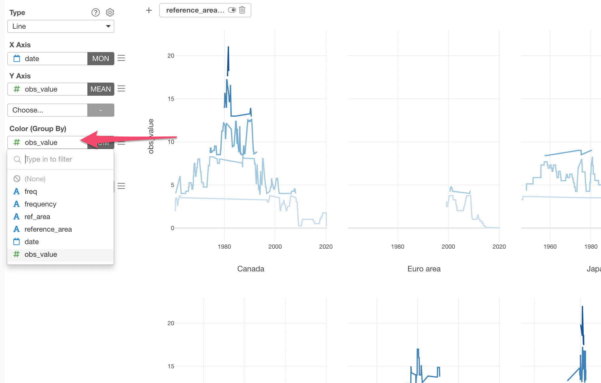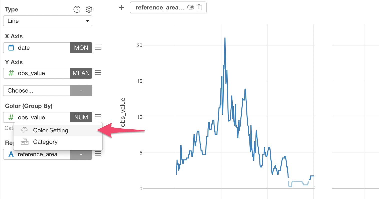 First, select the 'obs_value' column to the Color.