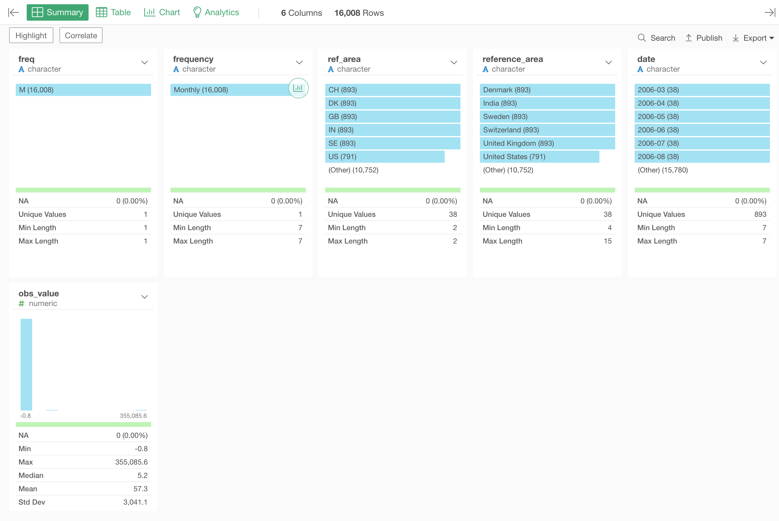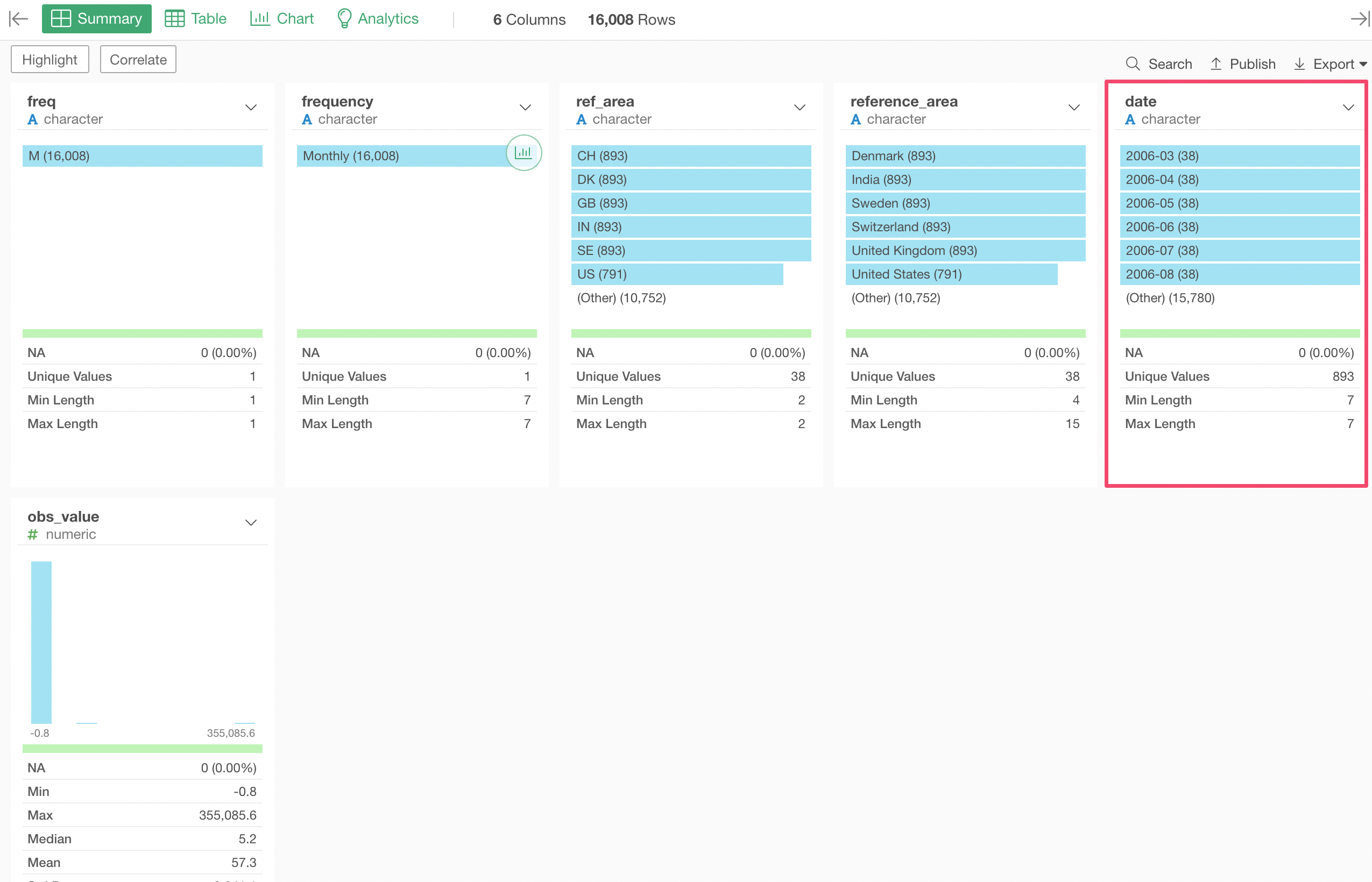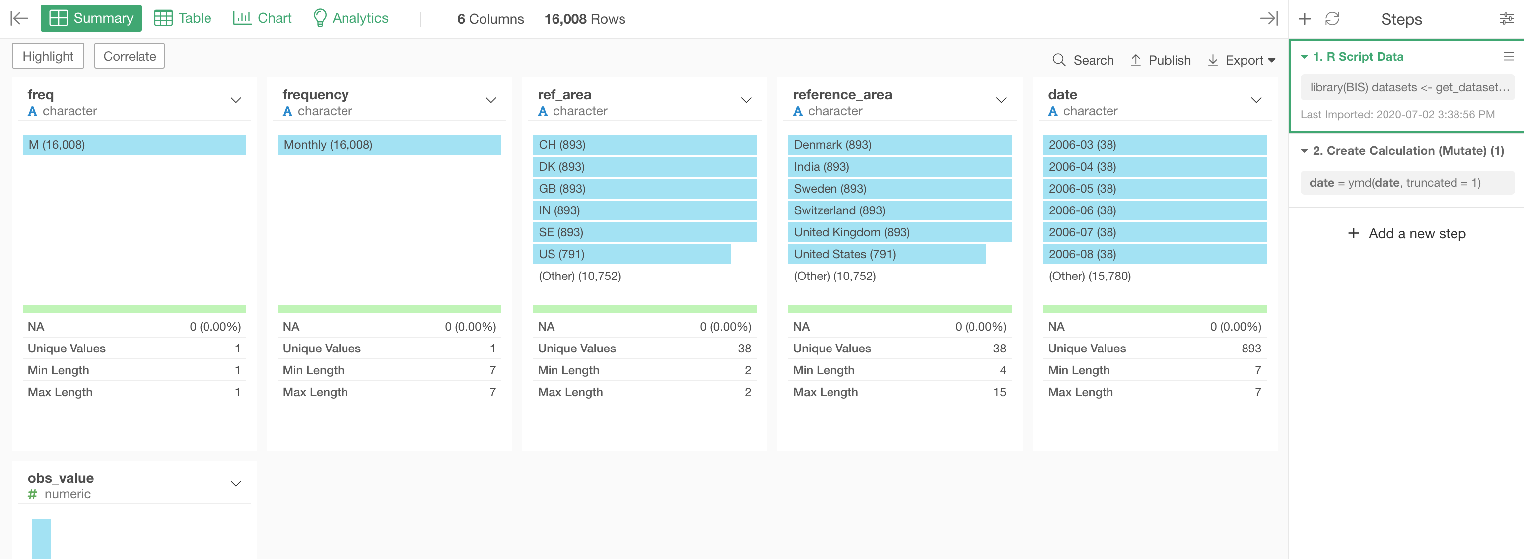 First, select the 'obs_value' column to the Color.