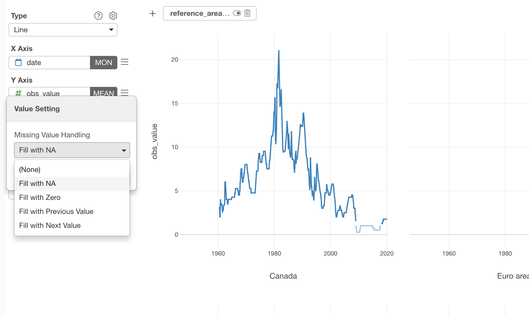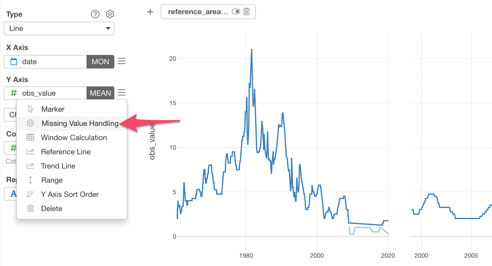 Select Missing Value Handling from the configuration menu for Y-Axis.