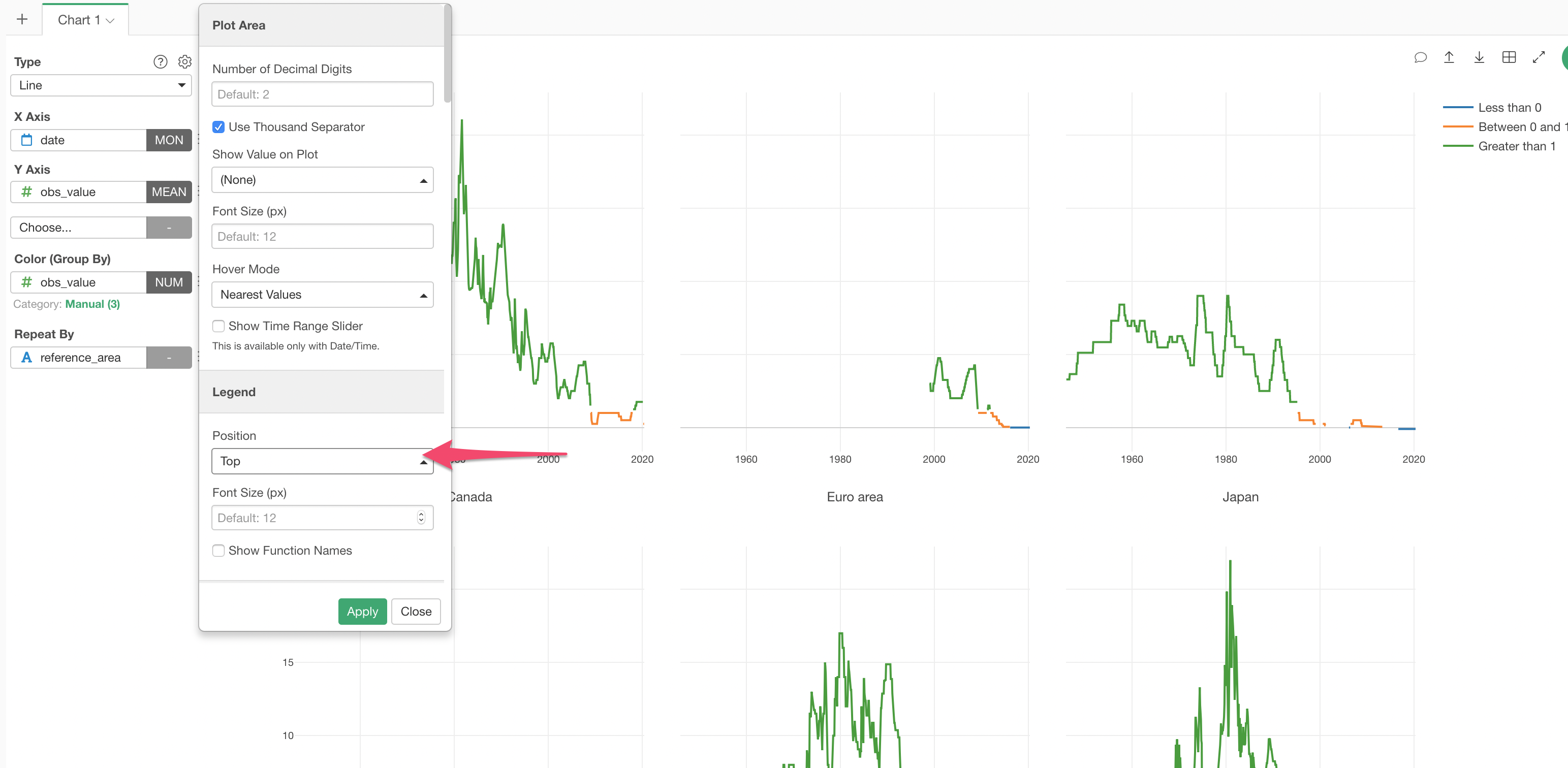 And let’s move the Legend position to the top from the Property dialog.