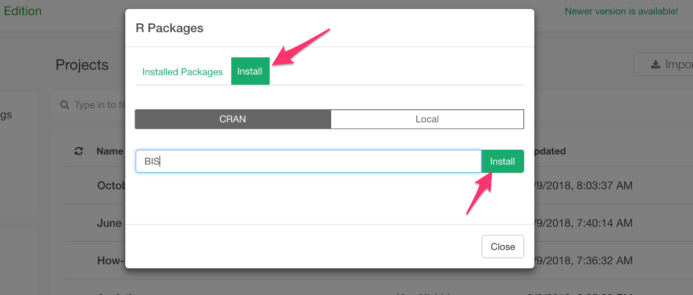 First, you need to install the BIS R package inside Exploratory before you can use it.
