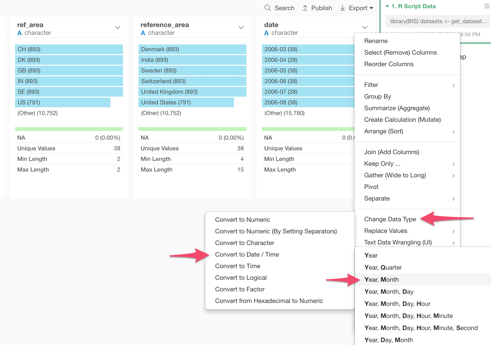 Select ‘Change Data Type’ -> ‘Convert to Date / Time’ -> ‘Year, Month’ from the column header menu of date column.